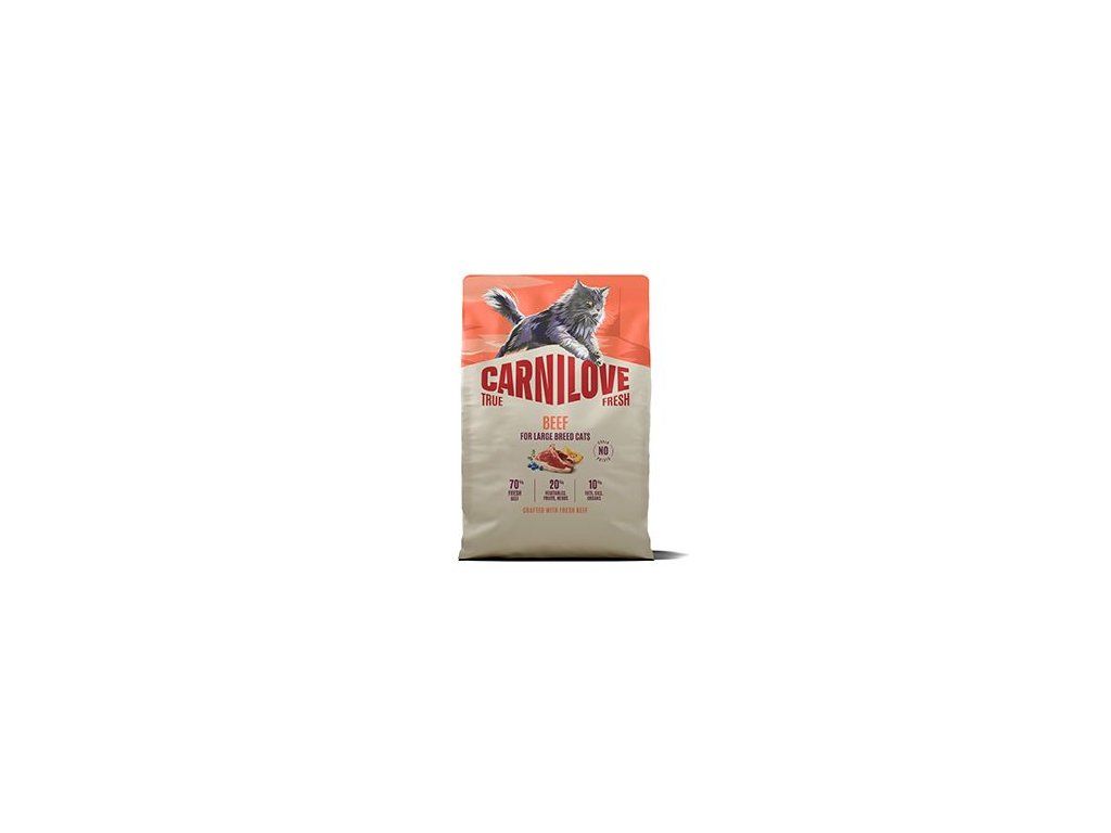 Tato receptura s čerstvým hovězím masem je ideální pro dospělé kočky velkých plemen a plně respektuje jejich přirozené výživové potřeby. Snadno stravitelné bílkoviny podporují silné svaly a celkovou kondici, zatímco dýně a luštěniny napomáhají trávení. Rakytník řešetlákový, brusinky a borůvky posilují přirozenou obranyschopnost, lososový olej a lněné semínko udržují kůži pružnou a srst hustou a lesklou, a přírodní zdroje glukosaminu a chondroitinu podporujízdravé klouby. Kompletní krmivo pro dospělé kočky velkých plemen.