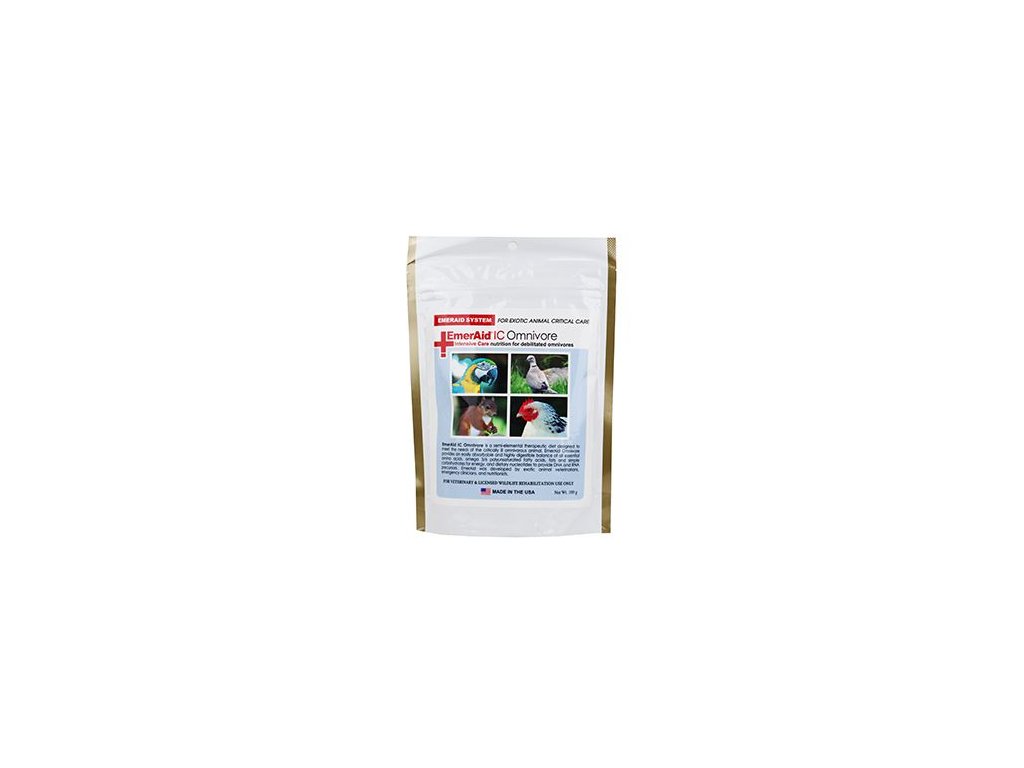 Emeraid IC Omnivore je terapeutická výživa určená k použití pouze pod dohledem veterinárního lékaře nebo záchranné stanice pro volně žijící zvířata. Může být používán jako jediný zdroj výživy po dobu 10 dnů, pokud veterinární lékař neurčí jinak.