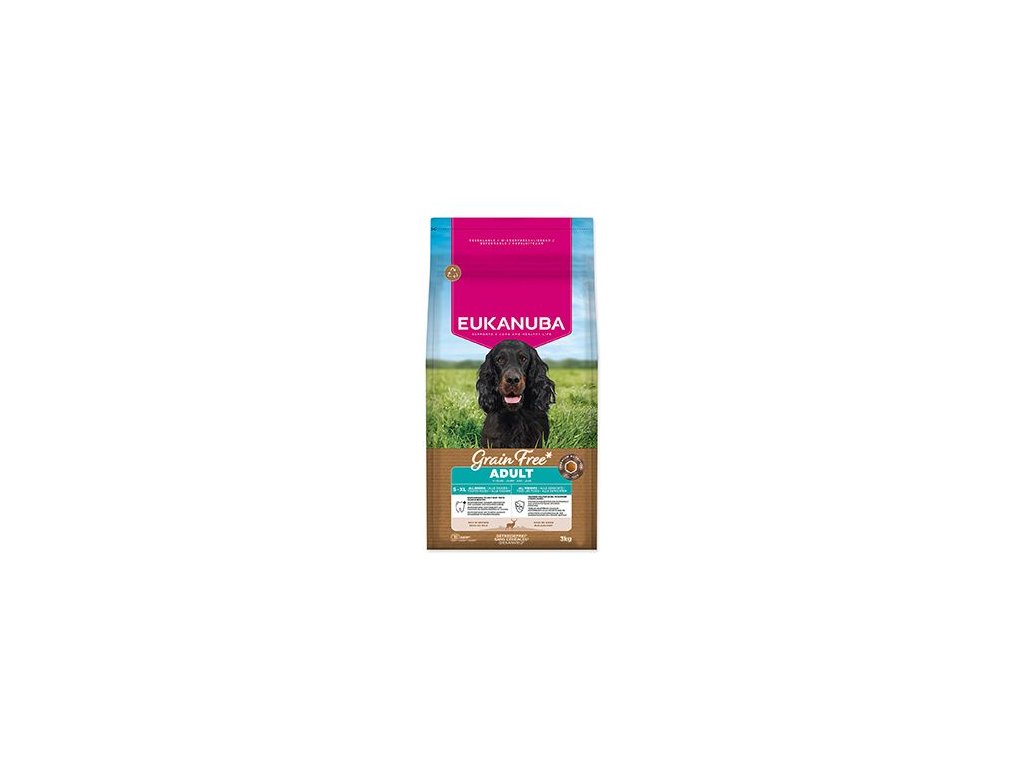 Toto suché krmivo EUKANUBA Grain Free* je speciálně formulováno pro dospělé psy všech plemen od 1 roku věku. Jeho receptura s nízkým obsahem alergenů, bohatá na zvěřinu, je pečlivě navržena pro psy s citlivostí na obiloviny a podporuje jejich specifické nutriční potřeby. Formule nabízí vyvážené krmivo s alternativními zdroji sacharidů, včetně hrášku a sladkých brambor bez lepku*, které poskytují přirozenou vlákninu, důležité vitaminy a antioxidanty. Díky čerstvě zmrazené zvěřině poskytuje krmivo také vysoce kvalitní živočišné bílkoviny potřebné k budování a udržení silných, štíhlých svalů. Pro podporu zdravého trávení obsahuje receptura speciální směs vlákniny, včetně prebiotického FOS a řepného řízků. Navíc unikátní šestiboké granule, v kombinaci s DentaDefense systémem péče o zuby, pomáhají udržovat zuby psa čisté a zdravé a aktivně snižují tvorbu zubního kamene v průběhu času. Formule obsahuje také upravenou hladinu vápníku pro podporu silných kostí, antioxidanty a vitaminy pro posílení imunitního systému a přirozené zdroje omega-6 a omega-3 mastných kyselin pro zdravou kůži a lesklou srst. Toto 100% kompletní a vyvážené krmivo poskytuje pokročilou výživu pro dospělé psy všech plemen, podporuje optimální tělesnou kondici, celoživotní zdraví a celkovou pohodu. Důvěřujte EUKANUBA, že dodá vysoce kvalitní výživu přizpůsobenou potřebám vašeho psa.