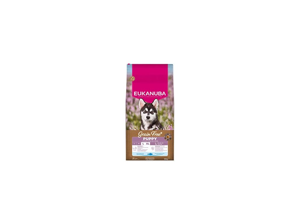Toto suché krmivo EUKANUBA Grain Free * je speciálně vyvinuto pro štěňata velkých plemen od 1 do 18 měsíců (nebo od 1 do 24 měsíců u obřích plemen). Složení s nízkým obsahem alergenů a bohatým obsahem mořských ryb je pečlivě navrženo pro psy s citlivostí na obiloviny a podporuje jejich jedinečné nutriční potřeby. Složení bez kuřecího masa nabízí plnohodnotnou výživu s alternativními zdroji sacharidů, včetně hrášku a bezlepkových* sladkých brambor, které poskytují přírodní vlákninu, základní vitamíny a antioxidanty. Krmivo obsahuje mořské ryby a dodává štěněti kvalitní živočišné bílkoviny nezbytné pro budování a udržování silných a štíhlých svalů. Obsažená DHA navíc zlepšuje schopnost učení štěňat, zatímco vápník podporuje vývoj kostí. Speciálně sestavená směs vlákniny s prebiotickými fruktooligosacharidy, mannanoligosacharidy a řepnou dužinou podporuje zdravé trávení, zatímco přírodní zdroje omega-6 a omega-3 mastných kyselin podporují zdravou kůži a lesklou srst. Toto suché krmivo poskytuje štěňatům velkých plemen pokročilou výživu, podporuje optimální tělesnou kondici a celoživotní pohodu. Krmivo EUKANUBA poskytne vašemu štěněti základ pro šťastný a zdravý život.