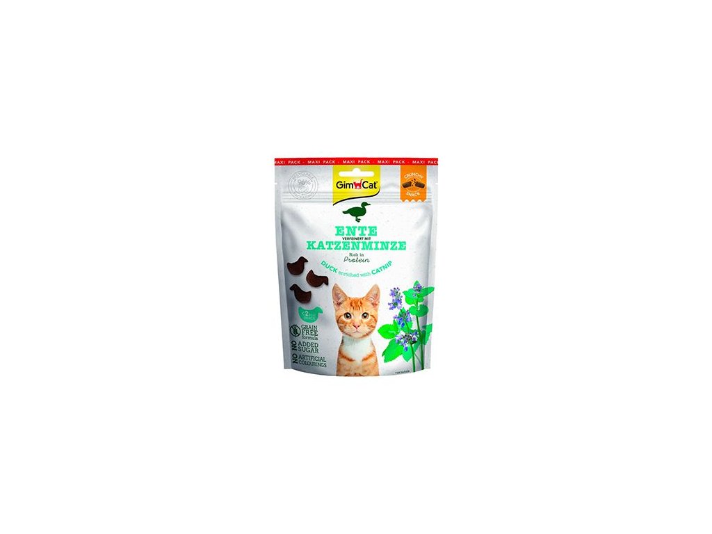 Pamlsky Crunchy Snacks pro kočky, neodolatelně lahodná kombinace kachního masa s aromatickou šantou kočičí. Receptura bez obilovin a umělých barviv, aromat a konzervačních látek.
