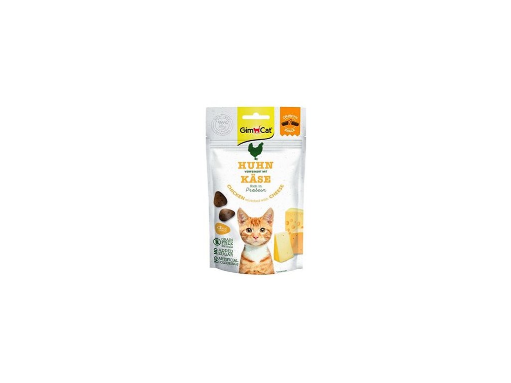 Hledáte skvělou změnu pro svou kočku? Pak má Gimcat pro vaši kočku to pravé zdravé občerstvení. Nabízí speciální kombinaci cenného zdroje bílkovin z kuřecího masa a navíc byl extra chutný díky kombinaci se sýrem, která zaručeně přesvědčí každého gurmána! Receptura bez obilovin a umělých barviv, aromat a konzervačních látek.