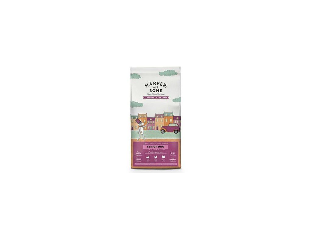 Harper and Bone Dog Senior Light příchutě farmy složené pouze z nejkvalitnějších surovin s vysokým podílem masa, přídavkem superpotravin a čerstvé zeleniny, zaručující prospěšné živiny a přirozenou chuť pro dokonale vyváženou výživu.