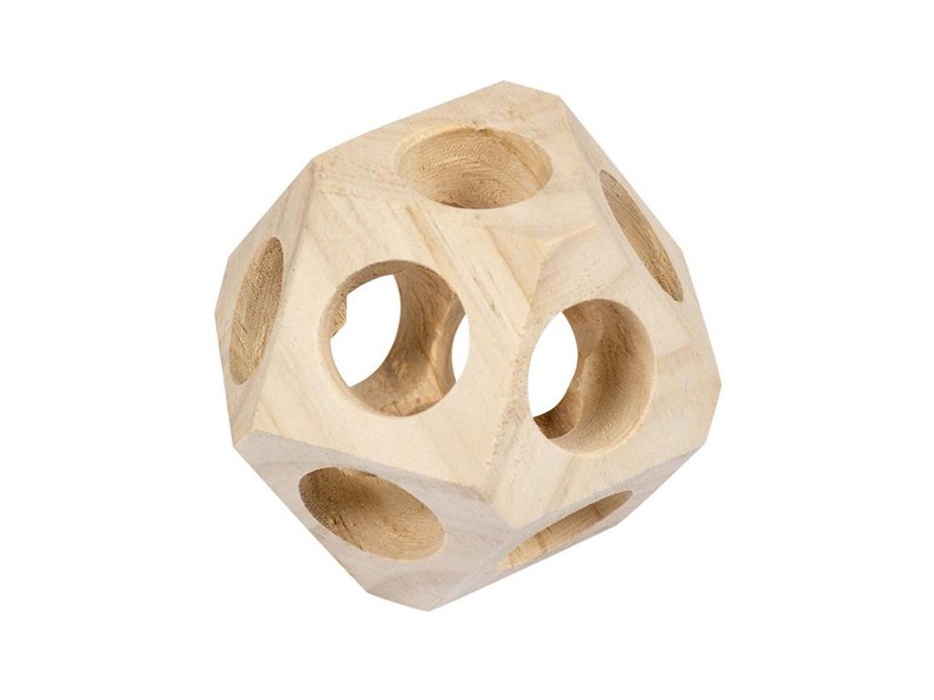 Dřevěná hračka z neupravovaného přírodního dřeva pro zábavu a předcházení nudy králíků a hlodavců. Pro drobné hlodavce poslouží i jako prolézačka a úkryt. Kouli můžete použít i jako krmítko a naplnit ji senem, bylinkami, zeleninou nebo dalšími zdravými pochoutkami. Dřevěné hračky podporují přirozený hlodavý instinkt. Hlodání je důležité pro dostatečné obrušování stále rostoucích hlodavých zubů a udržení jejich růstu pod kontrolou.
