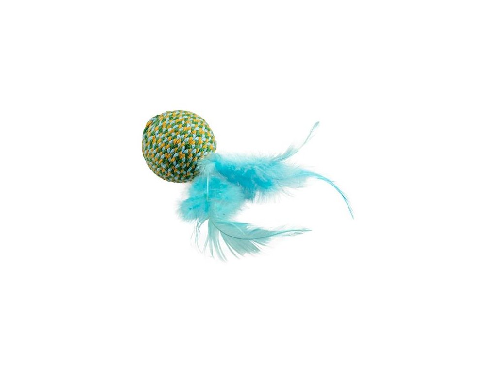 Míček pro kočky je omotaný bavlněným provázkem a doplněný peříčky. Uvnitř je ukrytá rolnička, která při pohybu cinká a vybízí ke hře. Hračka podporuje přirozený lovecký instinkt a motivuje kočku k pohybu, čímž ji pomáhá udržet v kondici.
