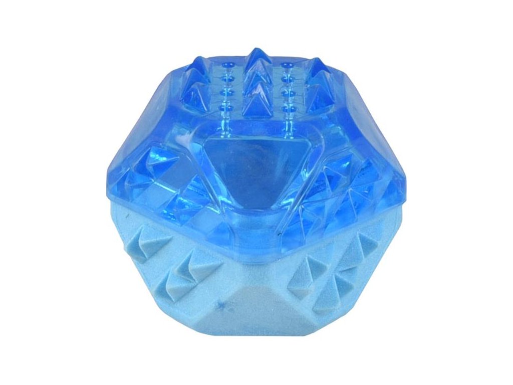 Koule Flamingo Snowy z odolné termoplastické gumy je ideální hračkou pro ochlazení psa v horkých letních dnech. Stačí ji naplnit vodou a zmrazit. Výstupky na povrchu hračky masírují dásně a čistí chrup, čímž napomáhají přirozené péči o zuby.