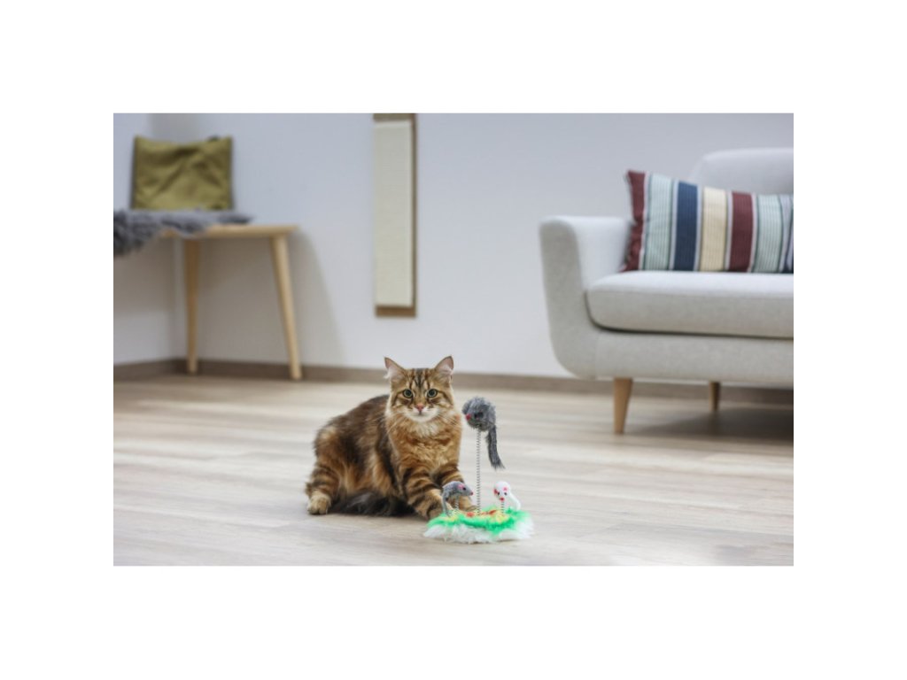 Hračka pro kočku – mouse swing je velmi zábavná kočičí hračka se třemi pérky s myší. Hračka je napuštěná catnipem, což vaši kočku ještě více stimuluje ke hře.