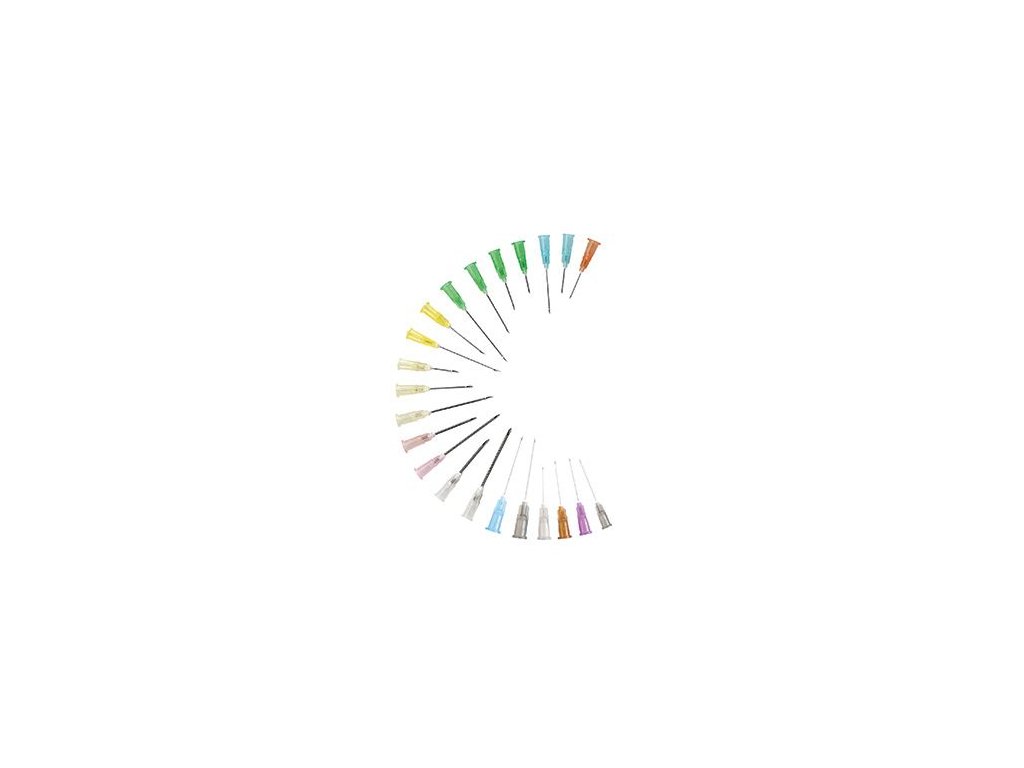 • Poloprůhledný plastový kónus jehly pro pohodlné sledování zpětného toku s barevným kódem ISO pro rychlou identifikaci průměru jehly.