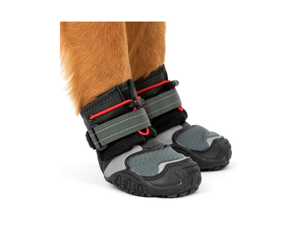 Celoroční outdoorová obuv pro psy Kurgo® Blaze najde uplatnění v každém ročním období: v létě ji lze použít k ochraně tlapek před horkými stezkami či rozpáleným asfaltem, v zimě k ochraně před ledem a sněhem. Tlapky ochrání také před nerovnostmi terénu a trny při kempování nebo turistice. Díky dvojitému zapínání kolem kotníku a vnitřní vložce, která zabraňuje klouzání tlapky v botě, nabízejí Kurgo® Blaze Vašemu psímu parťákovi spolehlivou ochranu při jeho nekonečných dobrodružstvích, která tak miluje. Ať už se vydá kamkoli, tyto boty ho bez problémů provedou po zvolené cestě. Podrážky jsou navrženy tak, aby kopírovaly strukturu tlapek, hustě tkaná nylonová síťovina je nepromokavá a svršek ze syntetické kůže je prodyšný. A aby byla zajištěna bezpečnost při dobrodružstvích po setmění, jsou zvýrazněny reflexním lemováním s odrazivostí 360°.