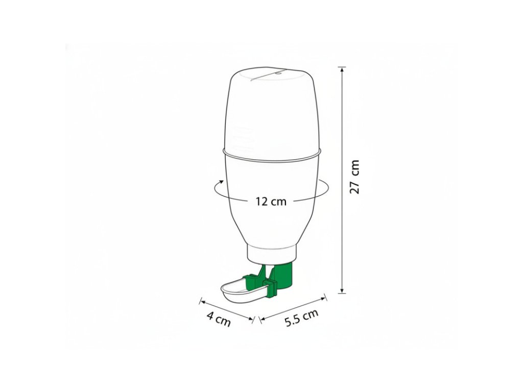 - celková výška napáječky včetně pítka je 27 cm a její průměr je 12 cm