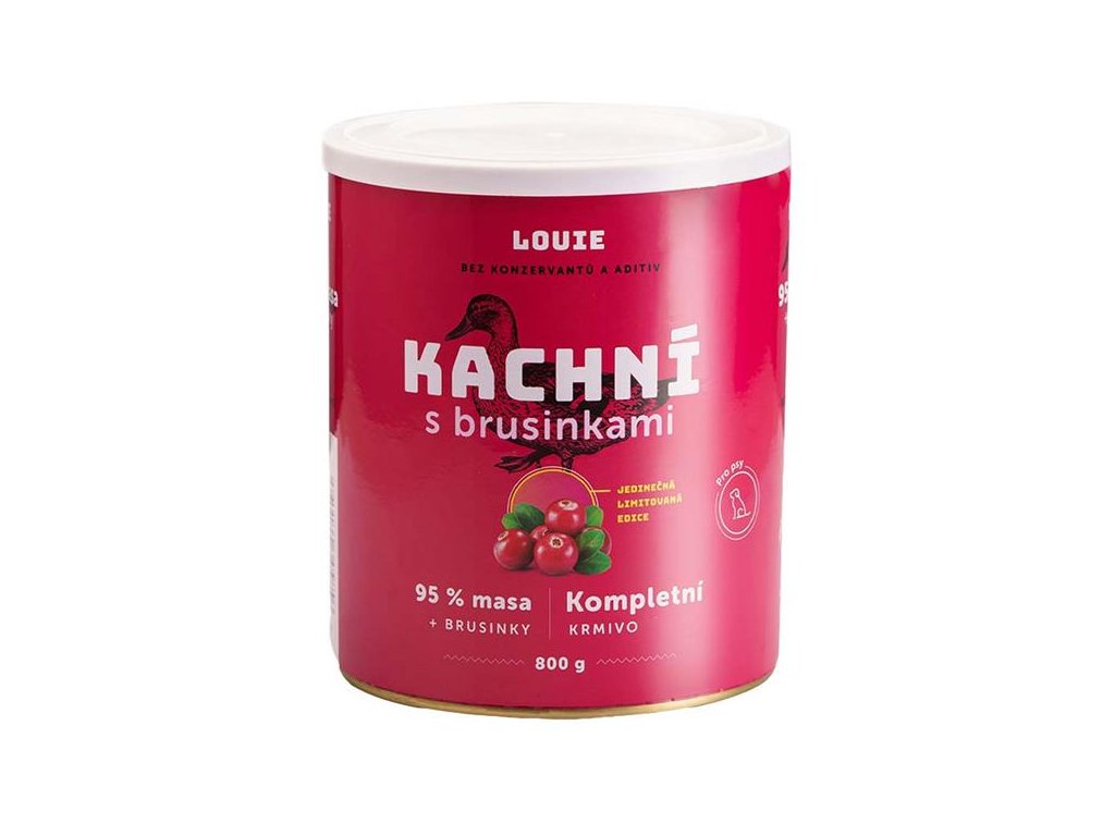 Šťavnaté kompletní krmivo v konzervě obsahuje 95 % mletého kachního masa v pevné složce. Dalšími ingrediencemi jsou změkčené kachní kosti, které fungují jako přírodní zdroj vápníku a fosforu v přirozeném poměru. Brusinky slouží jako doplněk pro podporu peristaltiky střev, napomáhají udržení zdravé močové soustavy a simulují minoritní rostlinnou složku v potravě psů.