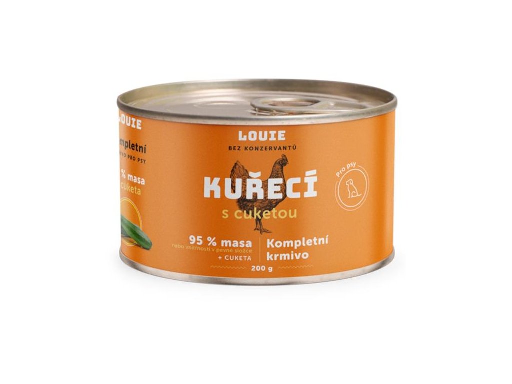 Šťavnaté kompletní krmivo v konzervě obsahuje 95 % mletého kuřecího masa v pevné složce. Zbylých 5 % obsahu tvoří cuketa, přidané vitamíny a minerály a rozemletý prášek z kuřecích kostí, který funguje jako přírodní zdroj vápníku a fosforu v přirozeném poměru. Rostlinná složka supluje obsah žaludku býložravé kořisti ve volné přírodě, dodává psům potřebné živiny a postará se o vstřebání šťávy, kterou maso během tepelné sterilizace uvolnilo.