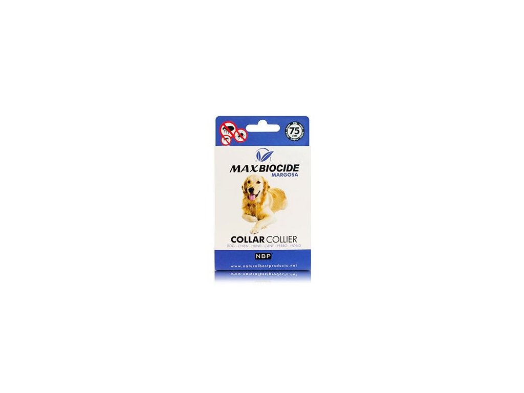 Antiparazitní obojek dlouhodobě působící proti blechám, klíšťatům a komárům. Max Biocide Dog Collar Obojek s délkou 75 cm je určený pro velké psy. Působí na bázi rostlinného extraktu z margosy – látky z tropického stromu zederachu indického, která má repelentní a biocidní účinky. Obliba této látky roste, protože je vhodný i pro zvířata, která jsou citlivá na chemické repelenty a mohou ji používat i štěňata již od 2 měsíců věku. Účinek obojku se projevuje již 3 hodiny po nasazení. Je voděodolný a chrání zvíře minimálně po dobu 4 měsíců. Obojek nezanechává chemickou stopu v přírodě. Na antiparazitní přípravky a obojky Max Biocide se nevytváří resistence.