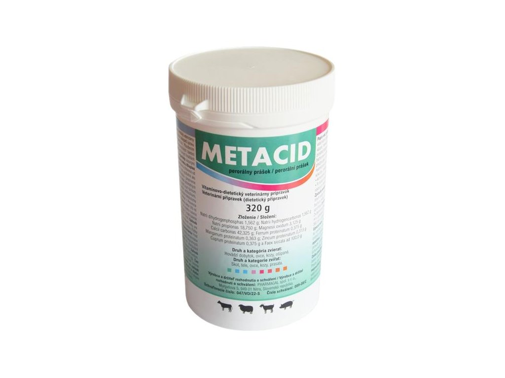 Kombinovaný přípravek určený k úpravě kyselého prostředí bachoru souvisejícího s metabolickou acidózou a obnově porušené bachorové a střevní mikroflóry.