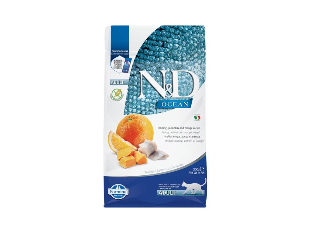 Receptura se sleděm, dýní a pomerančem pro dospělé kočky.