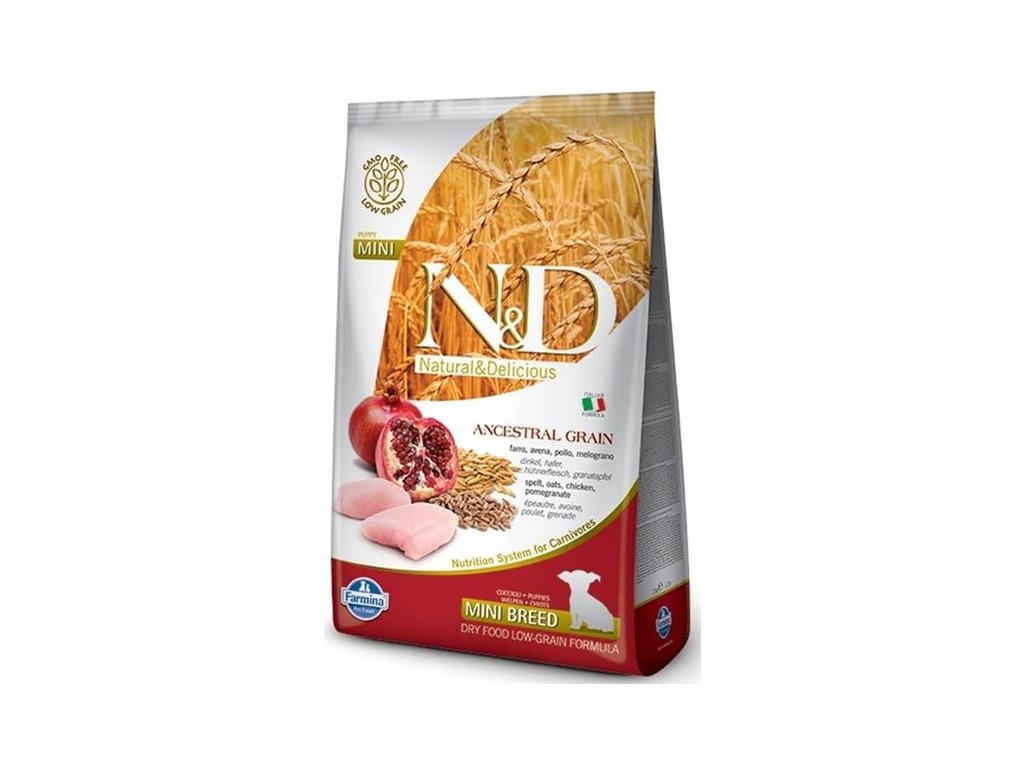 Receptura s kuřecím masem a granátovým jablkem pro štěňata, březí a kojící feny malých plemen.