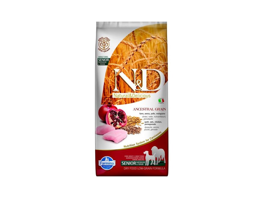 N&D ANCESTRAL GRAIN Dog LG Chicken, Spelt, Oats & Pomegranate Senior Medium & Maxi 12 kg