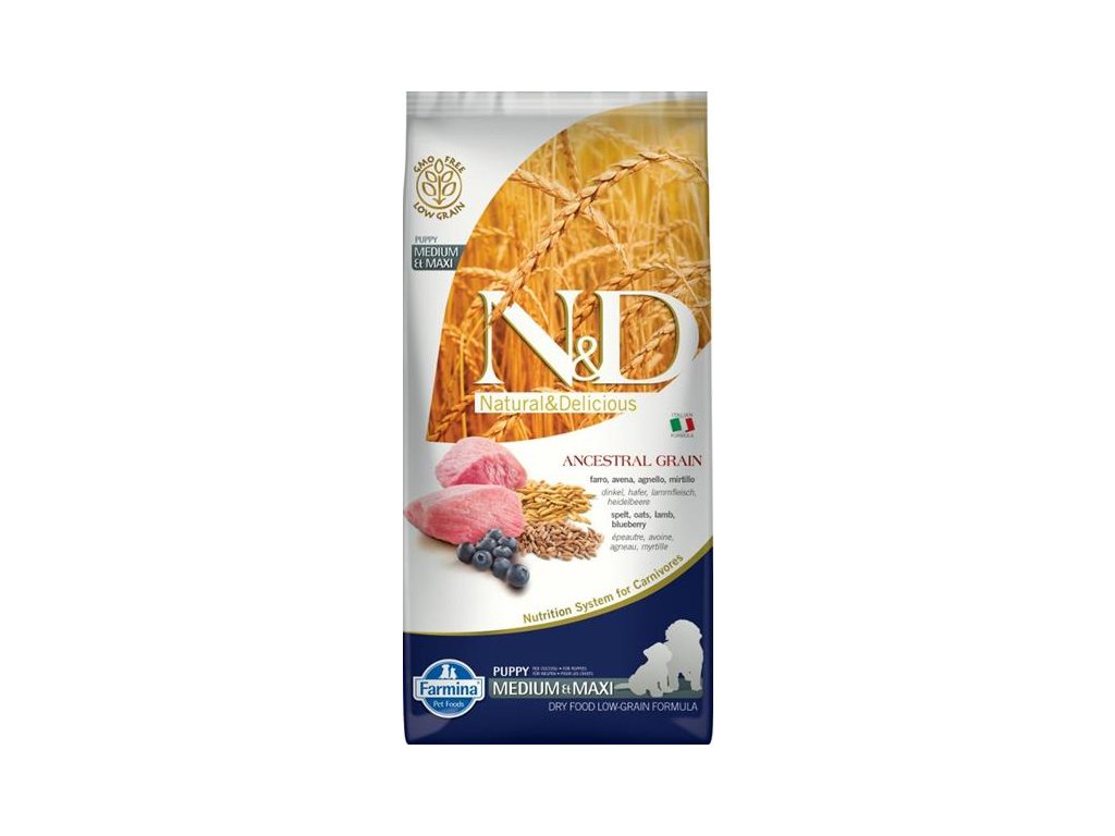 N&D Low Grain Dog Puppy M/L Lamb & Blueberry - jehněčí, borůvky a nízký obsah obilovin v kompletním krmivu pro štěňata středních a velkých plemen.