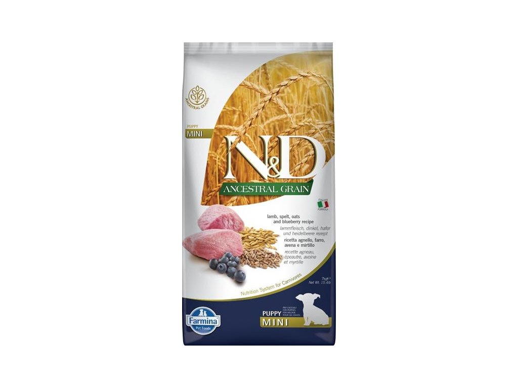 LAMB & BLUEBERRY PUPPY MINI (krmivo pro malá štěňata a feny v období březosti nebo kojení) - N&D; řada Ancestral Grain