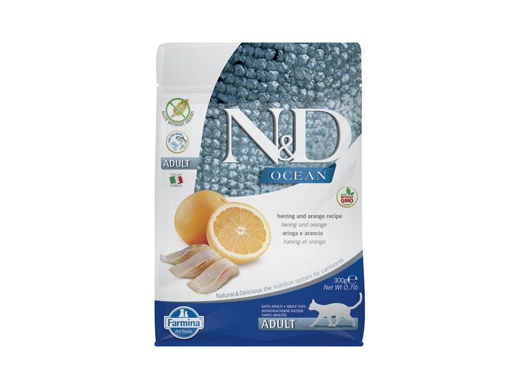 Receptura se sleděm a pomerančem pro dospělé kočky.