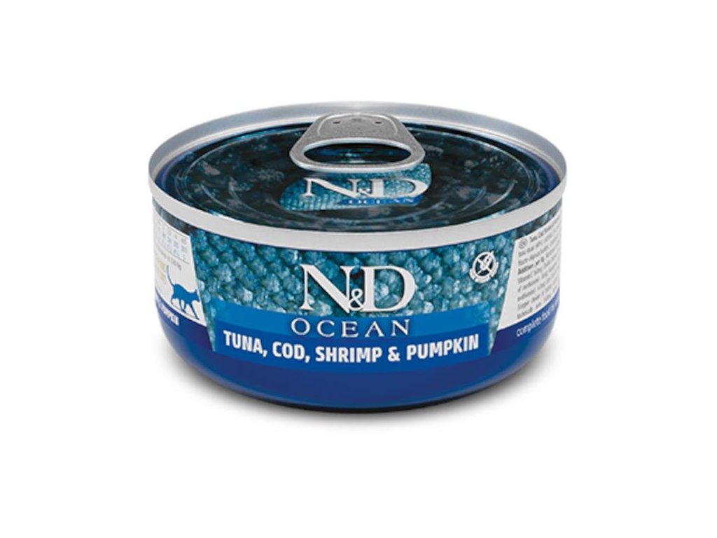 Kompletní vlhké krmivo je určené pro všechny dospělé kočky. Hlavním zdrojem vysoce kvalitních bílkovin jsou hypoalergenní tuňák, treska a krevety. Jejich maso je přirozeně bohaté na omega-3 mastné kyseliny, antioxidanty a další přínosné složky. Přidaná dýně je bohatá na betakaroteny a přírodní antioxidanty, chrání kardiovaskulární systém a podporuje imunitní systém a správnou motilitu střev. Rybí olej zaručuje optimální poměr omega-3 a omega-6 mastných kyselin pro dobrou kondici kůže a srsti a jejich regenerační schopnost. Přidaný glukosamin a chondroitin vyživují kloubní chrupavky a stimulují růst a regeneraci kloubních tkání. Krmivo neobsahuje obiloviny, geneticky modifikované suroviny, umělá barviva, bílkoviny ze sóji ani hormonální nebo antibiotická rezidua.