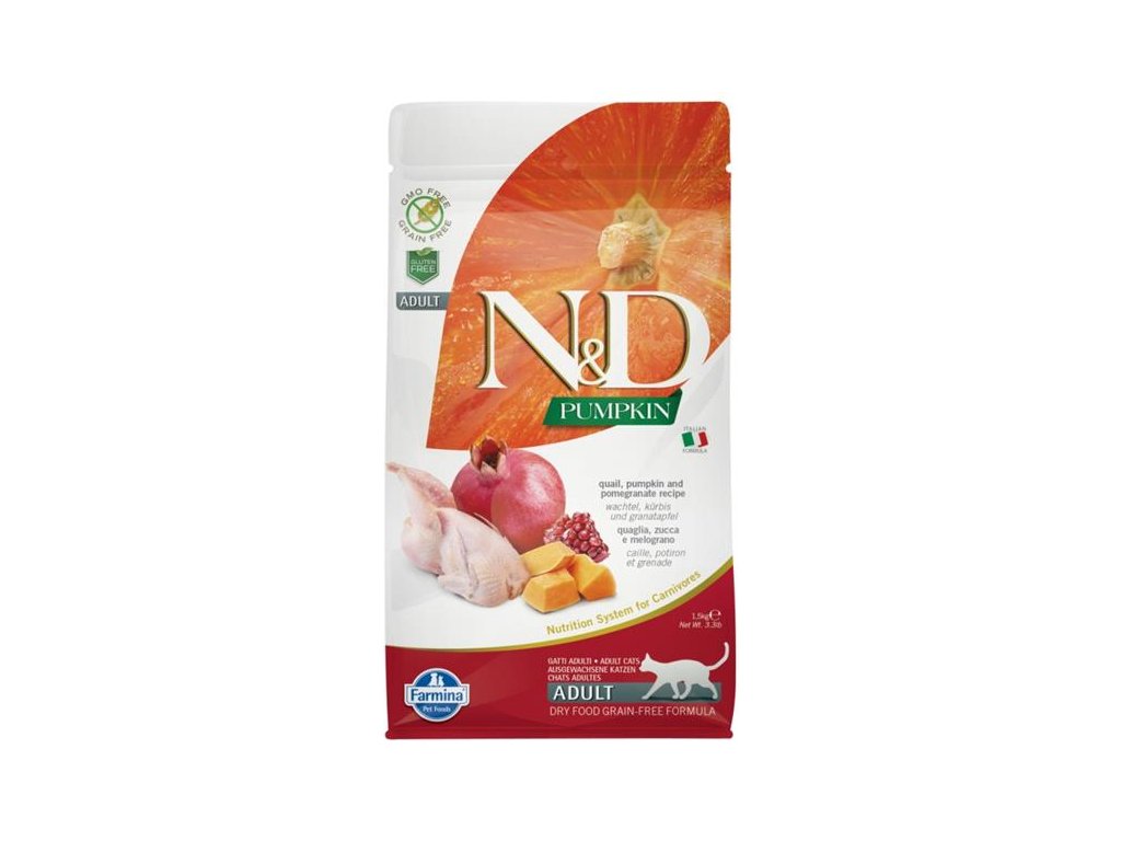 Receptura s křepelkou, dýní a granátovým jablkem pro dospělé kočky.