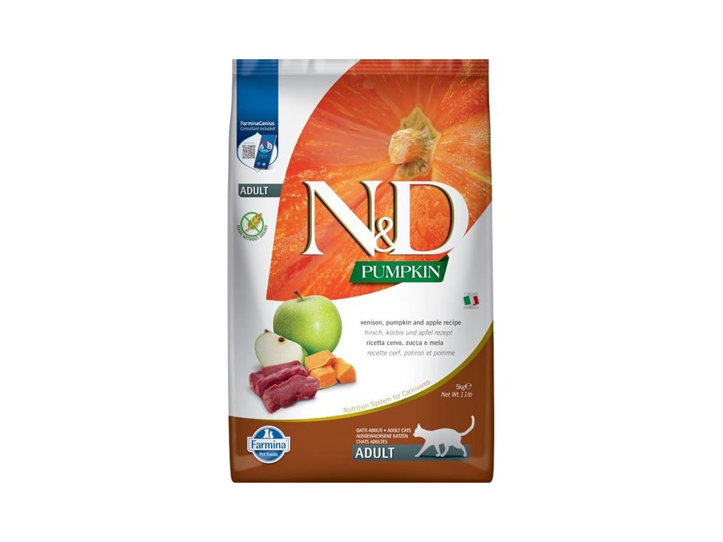 Vyvážené kompletní bezobilné krmivo se zvěřinou pro dospělé kočky. Bezobilná řada N&D Pumpkin kombinuje kvalitní živočišné bílkoviny s dýní pro kvalitní nasycení vašeho zvířecího kamaráda.