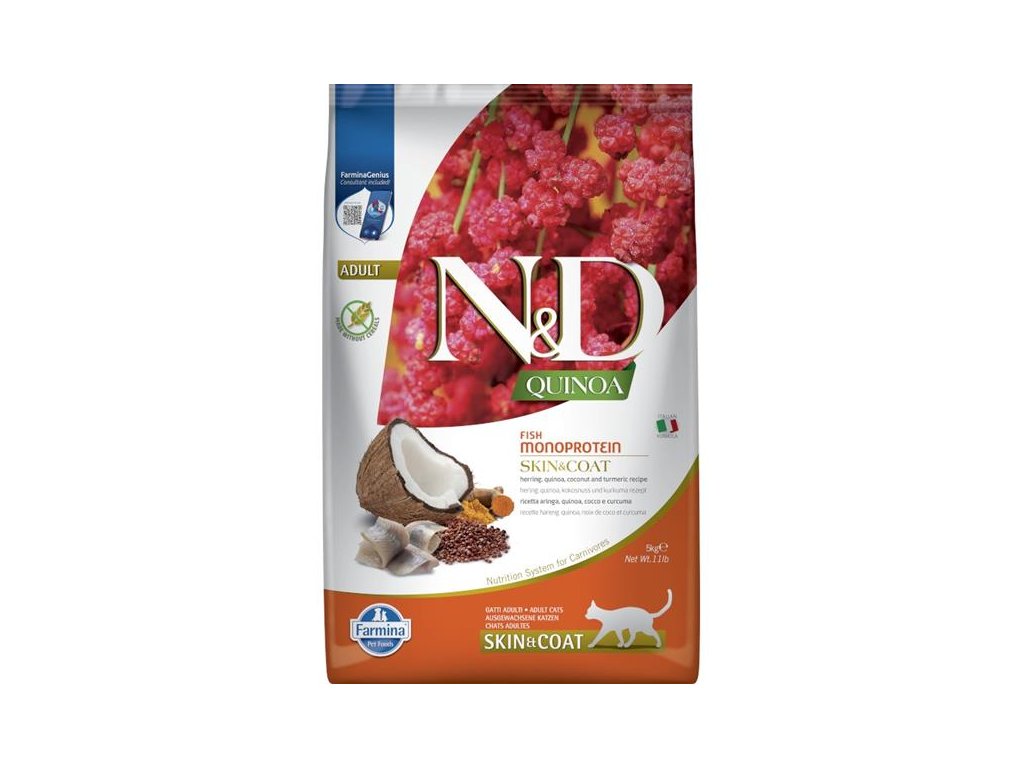 Vyvážené funkční krmivo je určené pro dospělé kočky při nežádoucí reakci na potravu pro navrácení a udržení zdraví kůže a srsti. Hlavním zdrojem vysoce kvalitních bílkovin v krmivu je hypoalergenní sleď. Přidaná quinoa v bio kvalitě pěstovaná v Itálii podporuje trávení, absorpci živin a celkově zdraví trávicího traktu. Dále je bohatá na vzácné aminokyseliny a přírodní antioxidanty a má nízký glykemický index. Rybí olej zaručuje optimální poměr omega-3 a omega-6 mastných kyselin pro dobrou kondici kůže a srsti a jejich regenerační schopnost. Přídavek glukosaminu a chondroitinu vyživuje kloubní chrupavky, stimuluje růst a ochraňuje klouby. Krmivo neobsahuje obiloviny, geneticky modifikované suroviny, umělá barviva, bílkoviny ze sóji ani hormonální nebo antibiotická rezidua.