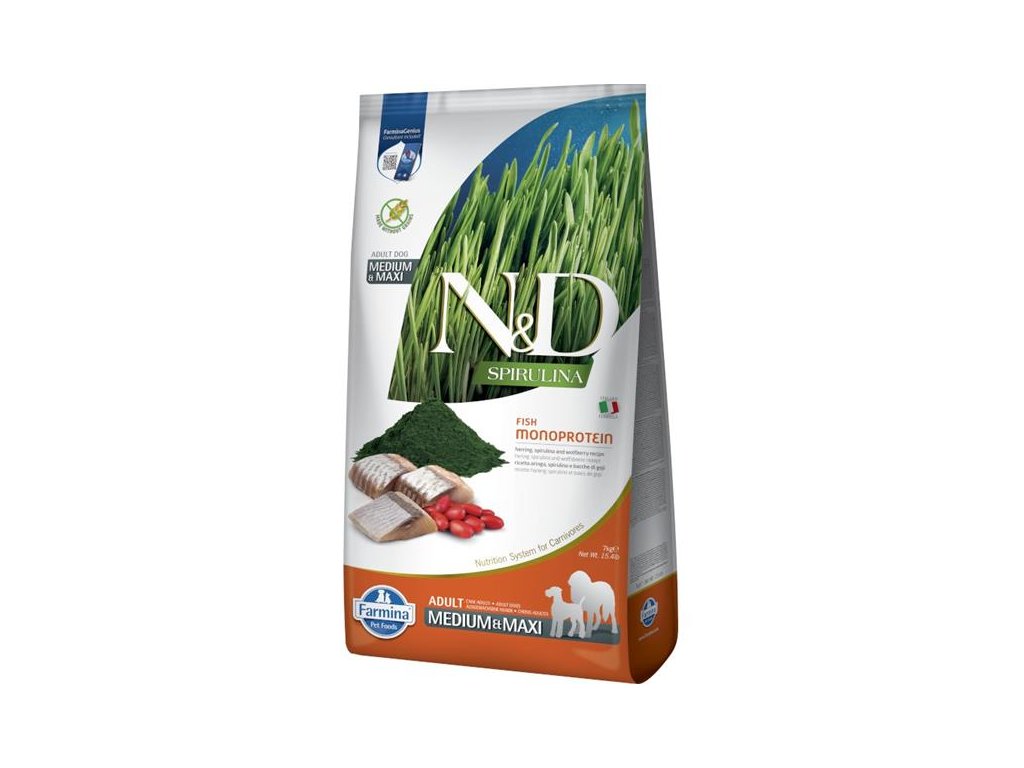 Vyvážené krmivo pro dospělé aktivní psy středních a velkých plemen obsahuje 96 % proteinů živočišného původu. Hlavním zdrojem vysoce kvalitních bílkovin je hypoalergenní norský sleď. Jeho maso je přirozeně bohaté na omega-3 mastné kyseliny, antioxidanty a další přínosné složky. Přidaná superpotravina spirulina je zdrojem mastných kyselin, vitamínů a minerálů. Díky svým silným antioxidačním účinkům má pozitivní vliv na trávení, imunitní systém a kvalitu srsti a kůže. Napomáhá také ke správnému metabolismu tuků a sacharidů, díky čemuž má pozitivní vliv na udržení štíhlé postavy. Rybí olej zaručuje optimální poměr omega-3 a omega-6 mastných kyselin pro dobrou kondici kůže a srsti a její regenerační schopnost. Přidaný glukosamin a chondroitin vyživují kloubní chrupavky a stimulují růst a regeneraci kloubních tkání. Krmivo neobsahuje obiloviny, geneticky modifikované suroviny, umělá barviva, bílkoviny ze sóji ani hormonální nebo antibiotická rezidua.