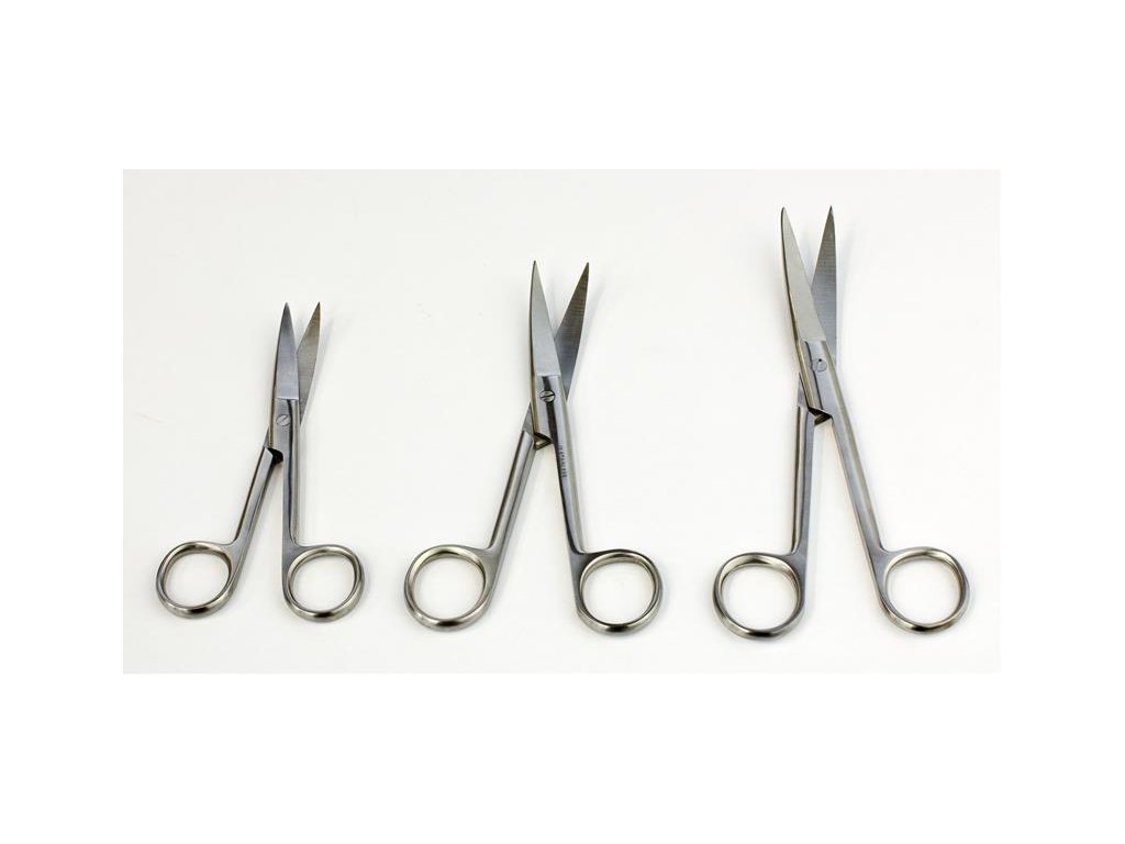 Chirurgické nůžky se zahnutými a špičatými čepelemi.