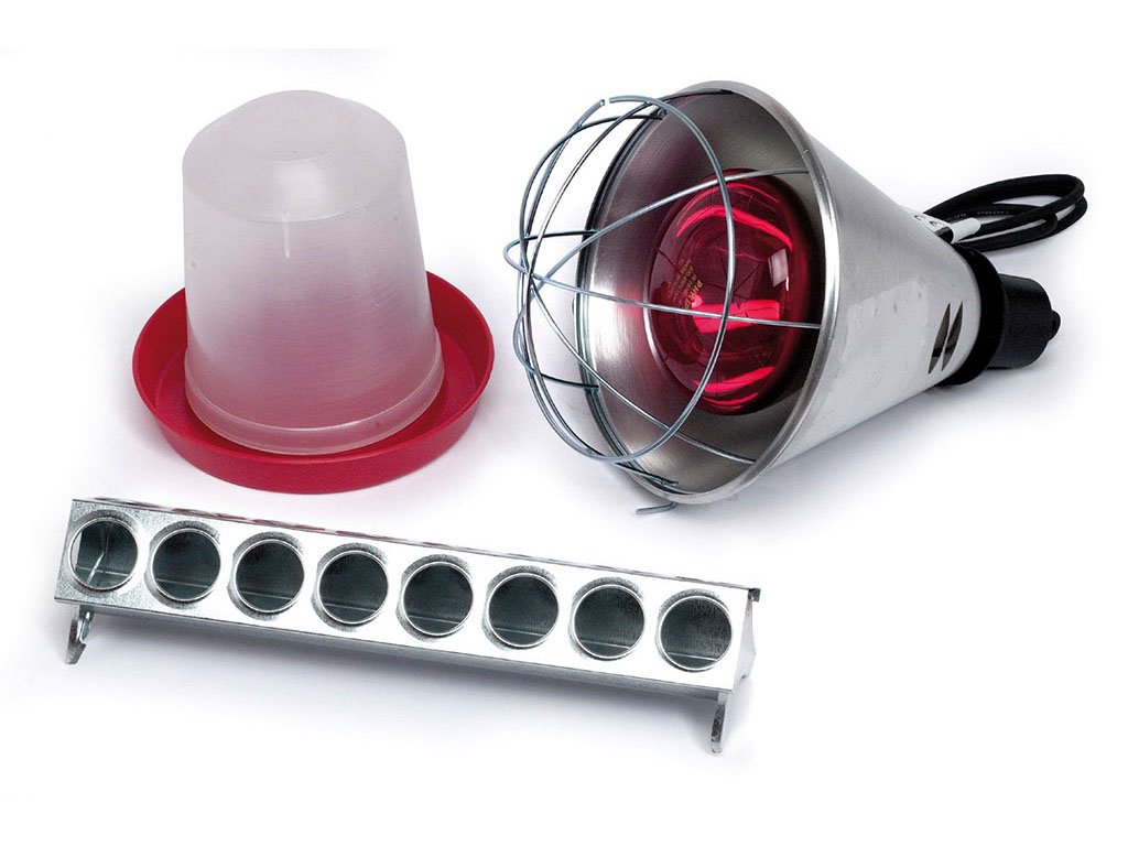 Světlo a teplo v odchovně zajistí hliníková lampa s infračervenou žárovou (žárovka 150 W je součástí balení). Infra lampa je vybavena ochranným krytem.