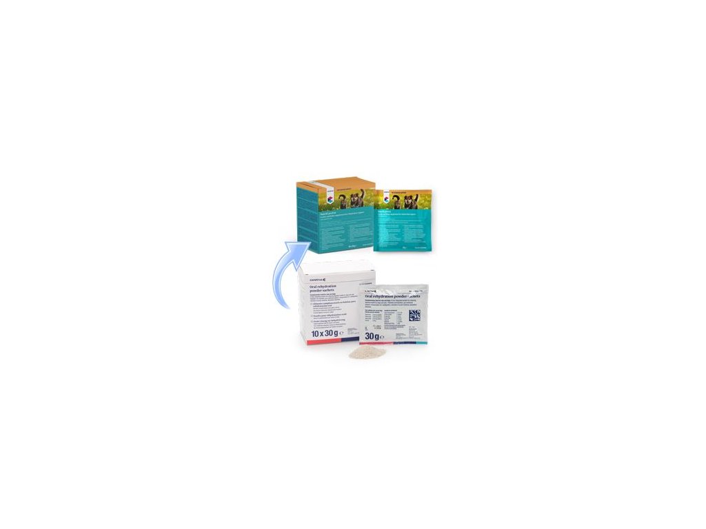 Přípravek je určen k doplnění ztrát elektrolytů, vitamínů a aminokyselin u dehydratace a malnutrice. Pro psy a kočky. Složení: Dextróza, hydrolyzované živočišné bílkoviny, chlorid sodný, chlorid draselný, betaglukany, kyselina glutamová. Bez citrátů, přírodní kuřecí příchuť. Vitamín B1 0,35 mg, vitamín B3 2,65 mg, vitamín B6 0,25 mg, taurin 0,09 g v 30 g sáčku Návod k použití: Jeden sáček smíchejte s 500 ml vody. Při akutních obtížích: Podávejte po dobu 1-2 týdnů společně s běžným krmivem, případně dle doporučení veterináře. Může se podávat přes stříkačku nebo z misky. Při poruchách trávení: Podávejte po dobu 3-12 týdnů, v případě chronické nedostatečnosti slinivky lze podávat dlouhodobě. Jako nutriční doplněk (obsah vysoce stravitelných složek včetně aminokyselin, nízký obsah tuku): Prvních 12 hodin 1 ml/kg každé dvě hodiny, poté 12 - 24 hodin 2 ml/kg každé dvě hodiny, poté 24 - 72 hodin 3 ml/kg každé dvě hodiny.Doplňkové parametry