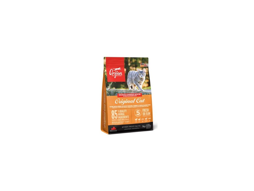 ORIJEN ORIGINAL CAT je plné proteinu z volně chovaných kuřat a krůt, ryb lovených v přírodních vodách a vajec z hnízdních chovů. Všechny tyto suroviny jsou nám dodávány čerstvé nebo syrové v bohatě výživném poměru Celé kořisti. Vítězně oceňovaná krmiva ORIJEN vám zaručí, že vaše milovaná kočka nebo kotě budou spokojené, zdravé a silné. Přečtěte si naše složení a věříme, že budete souhlasit.