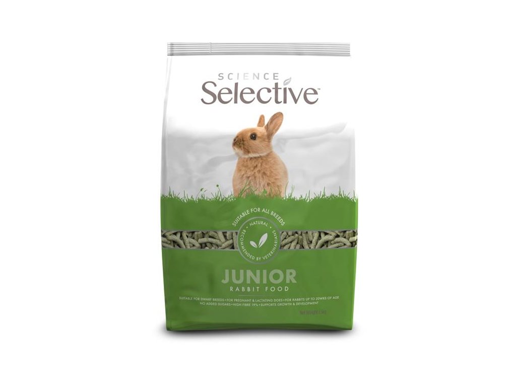 Supreme Science Selective Rabbit Junior – mladý králík je velice chutné, nutričně kompletní a vyvážené krmivo pro mladé králíky od 4 do 20 týdnů věku a pro březí a kojící králice. Toto monokomponentní extrudované krmivo s identickými kousky zajišťuje, že si váš králík nebude vybírat z krmiva své oblíbené kousky tak, jako to může dělat u nehomogenních krmných směsí.