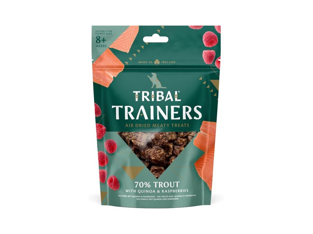 Výcvikové pamlsky Tribal Trainers Trout & Raspberry jsou připravené z čerstvého pstruha a superpotravin, jako jsou maliny, které jsou bohaté na vlákninu, vitamíny a antioxidanty. Šetrný výrobní proces – sušení na vzduchu za nižších teplot – zajišťuje, že jsou pamlsky měkké, šťavnaté a plné živin.