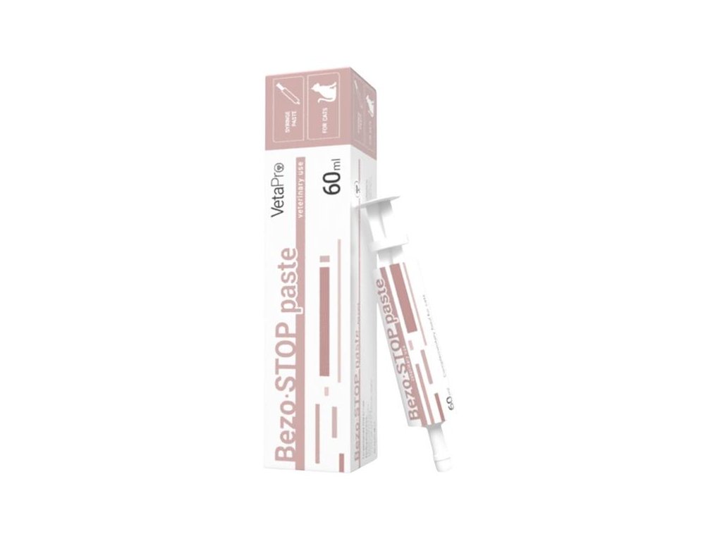 Bezo-Stop Paste je doplňkové krmivo ve stříkačce na bázi oleje určené k odstranění a prevenci tvorby trichobezoárů u koček. Pokrývá žaludek a trávicí (gastrointestinální) trakt olejovou vrstvou v místech, kde cizí tělesa mohou způsobit obstrukci. Preventivní použití se doporučuje u plemen koček s dlouhou srstí (perské) a u koček chovaných v interiéru bez přístupu k hrubým vláknům (trávě), které by vyvolávaly zvracení.