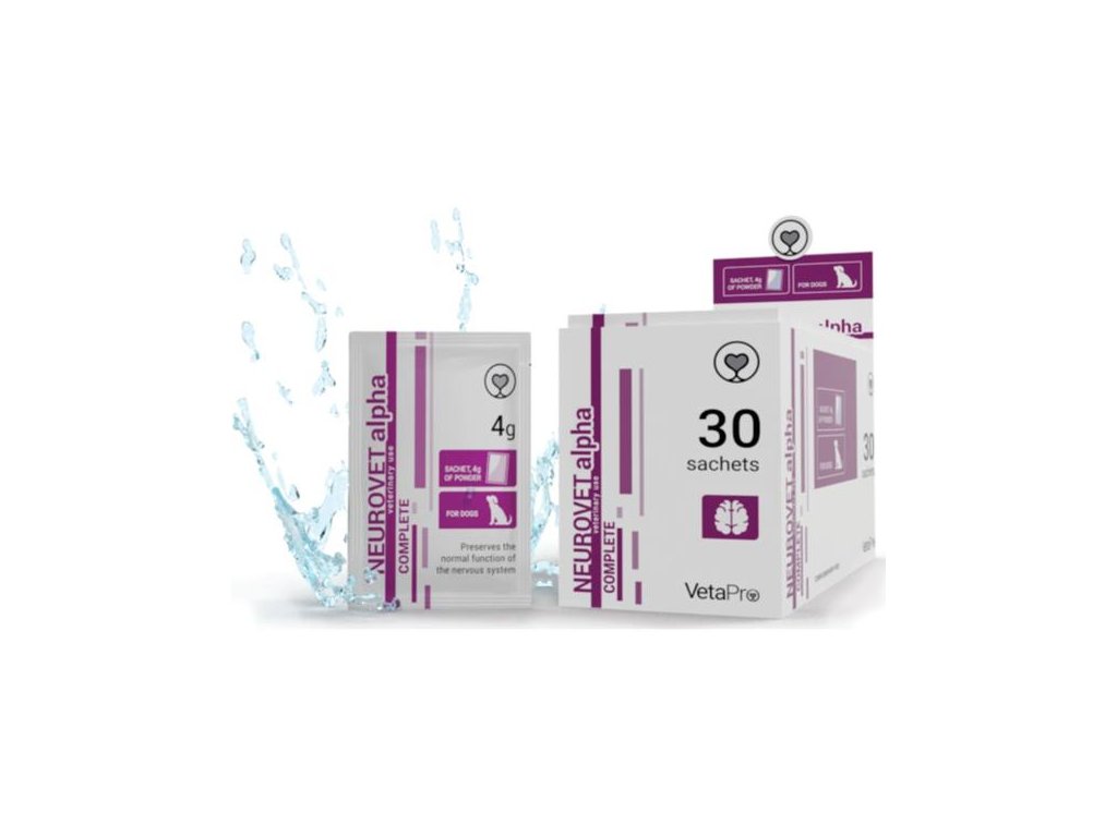 Neurovet Alpha Complete je nutriční doplněk pro psy s neurodegenerativními chorobami, degenerativní artritidou nebo pro zpomalení procesu stárnutí a regenerace nervové a muskuloskeletální tkáně.