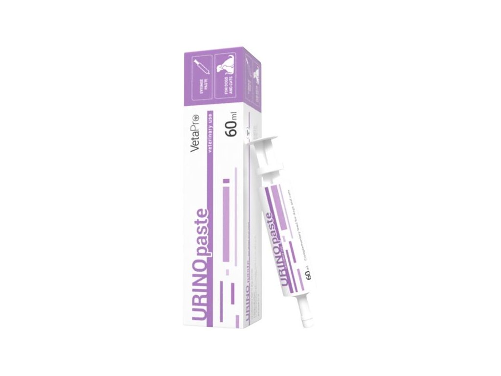 Urino Paste je doplňkové krmivo v injekční stříkačce ve formě gelu pro psy a kočky, které pomáhá redukovat močové kameny a tzv. struvity a jejich recidivy. Může být součástí strategie managementu u koček a kočkovitých šelem s urologickým syndromem (FUS) a psů náchylných k tvorbě močových kamenů. Podporuje redukci recidivy močových kamenů hlavně v případech, kdy není možná změna stravy.