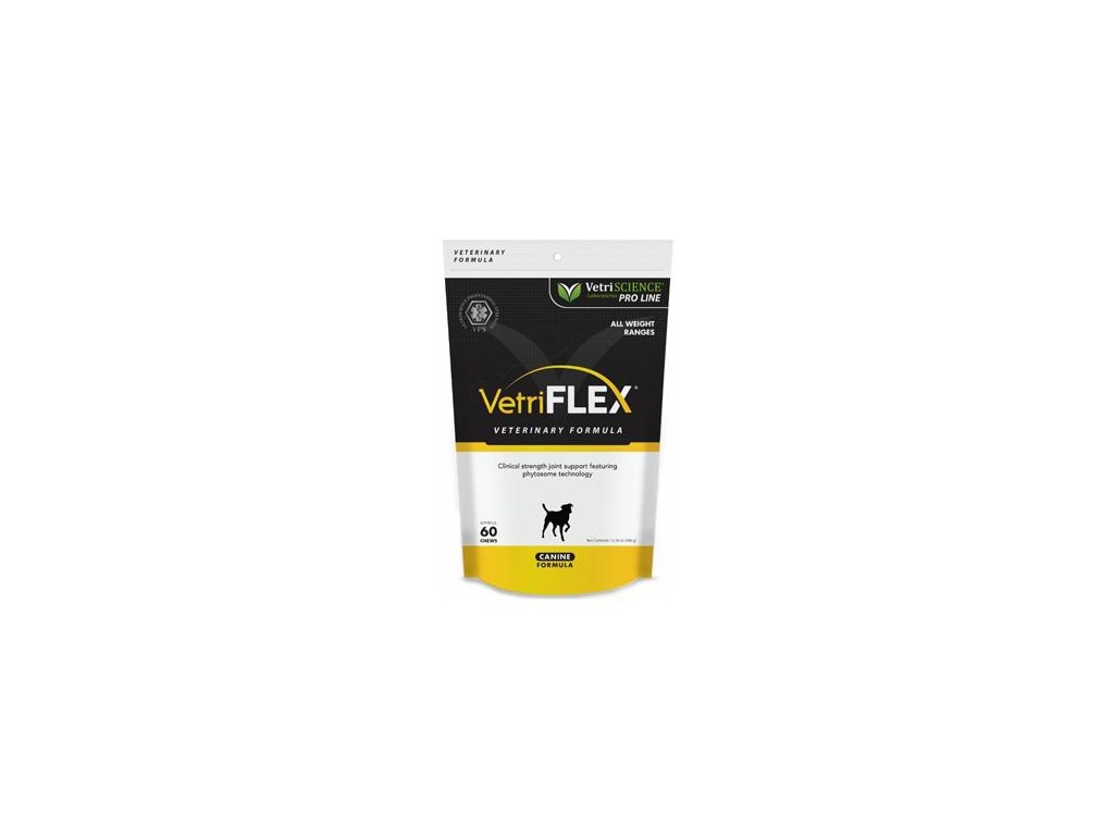 Fytosomová technologie aktivuje antioxidant kurkuminu, boswellie a hroznových semínek poskytuje vyšší biologickou dostupnost než u standardních extraktů. Obsahuje klinicky ověřený GlycoFlex® 3 a další antioxidační bylinné výtažky. Podporou zdravého průběhu zánětlivého procesu, poskytuje receptura VetriFlex® vynikající kloubní komfort pro psy.