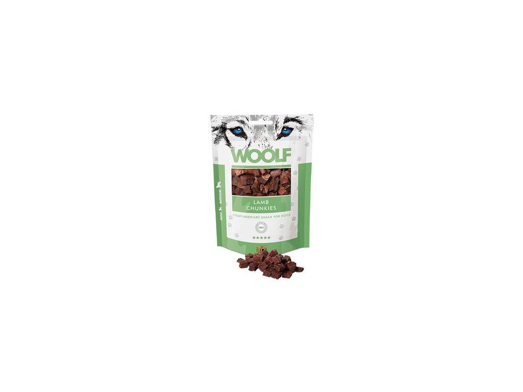 Měkký jehněčí masový pamlsek ve tvaru malé kostičky nutí i malá plemena ke kousání. Díky jehněčímu masu je vhodný pro citlivé psy. Pamlsek je vhodný zejména pro malá plemena psů. Pochoutky Woolfsnacks jsou speciálně navrženy pro psy všech plemen. Při výrobě jsou ze 100% použity bílkoviny té nejvyšší kvality pro co nejlepší příjem potravy. Veškeré pochoutky Woolfsnacks, jakmile se vyrobí, jsou zabaleny bez chemických přísad, konzervačních látek, nebo barviv. K zajištění ochrany je do sáčku umístěn absorbér kyslíku. Nekonzumovat okysličovadlo.