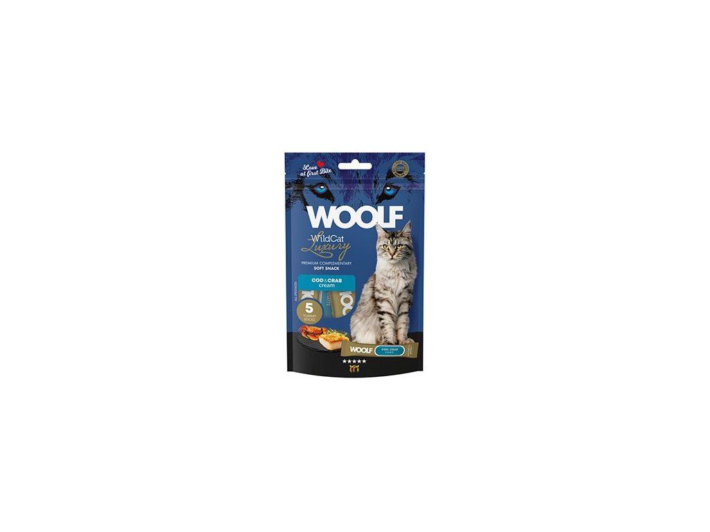Doplňkové krmivo pro kočky, luxusní krémový pamlsek s treskou a krabem.