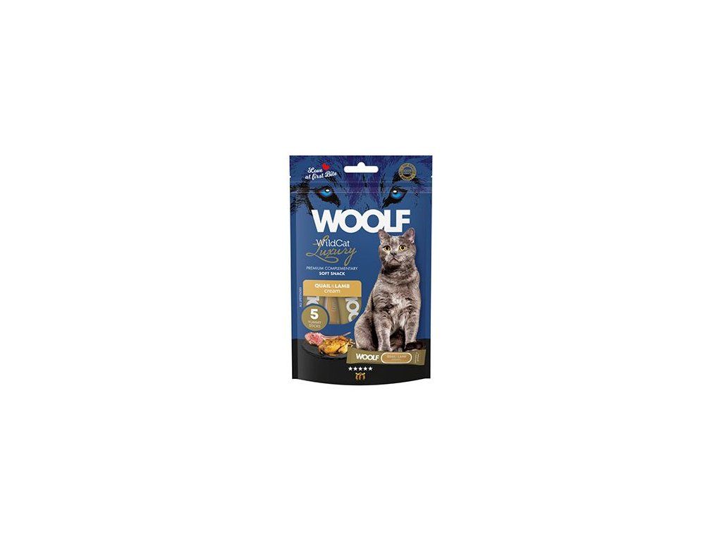Doplňkové krmivo pro kočky, luxusní krémový pamlsek s křepelkou a jehněčím.