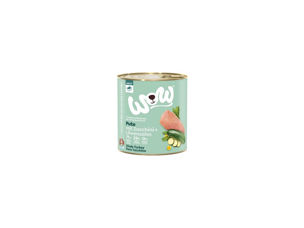 WOW Dog Krocan s cuketou je kompletní mokré krmivo pro dospělé psy všech plemen se 71% obsahem masa a vnitřností od předního rakouského výrobce. Maso je doplněno zeleninou, bylinkami z Alp a vysoce kvalitním lněným olejem. Konzervy jsou plněné v rodinné rakouské firmě z místních, většinou alpských, surovin z čisté přírody.